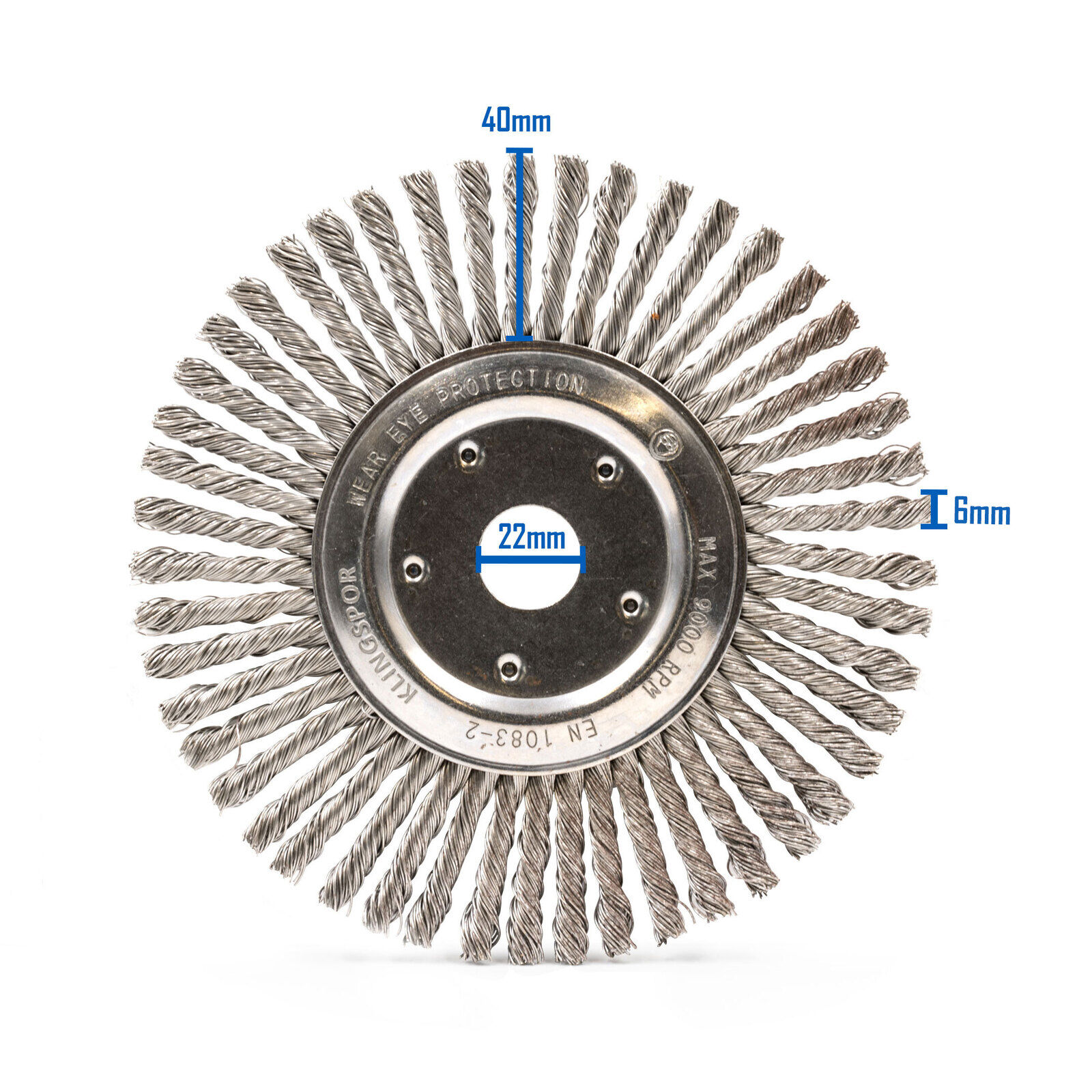 The brush operates at a maximum speed of 3,000 RPM, making it suitable for heavy-duty applications where controlled, consistent performance is essential. It is compatible with larger angle grinders fitted with a 22.23mm bore, offering versatility across industrial setups.