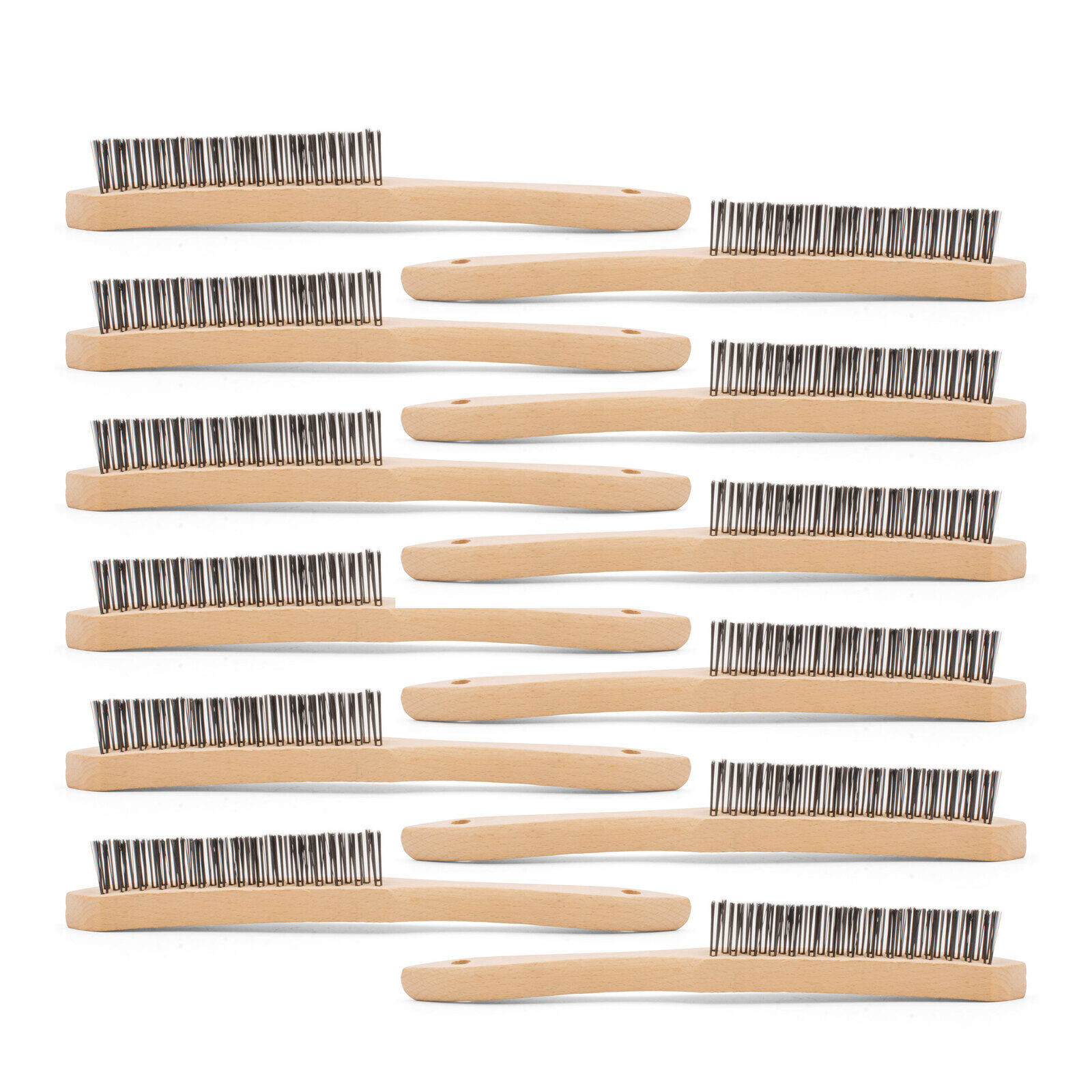 Klingspor V Shaped Scratch Brush - Carbon Steel - Wooden Handle 3 Row - 12 Pack