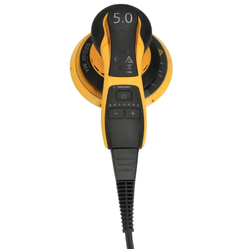 The Mirka Deros II 5650CV 125/150mm Sander - 5mm Orbitis a direct electric random orbital sander designed for high-performance dust-free sanding. It features a lightweight, ergonomic build with low vibration and noise levels, ensuring comfort for extended use. Equipped with a high-efficiency brushless motor, the DEROS II 5650CV maintains consistent speed and performance. The improved design includes an easy-to-use speed control lever, LED indicators, and a separate on/off switch. Bluetooth connectivity allows integration with the myMirka app for real-time vibration monitoring.