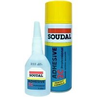 Soudal 2C Adhesive Kits (50 gr Cyano / 200ml Activator) Adhesive Sealant 50gr & 200ml is a premium General adhesive & sealant designed for Australian trade and DIY use. A two pack system consisting of a high viscosity cyanoacrylate adhesive and an aerosol activator that sets in 10 secs! High bond strength, Very fast bonding.
