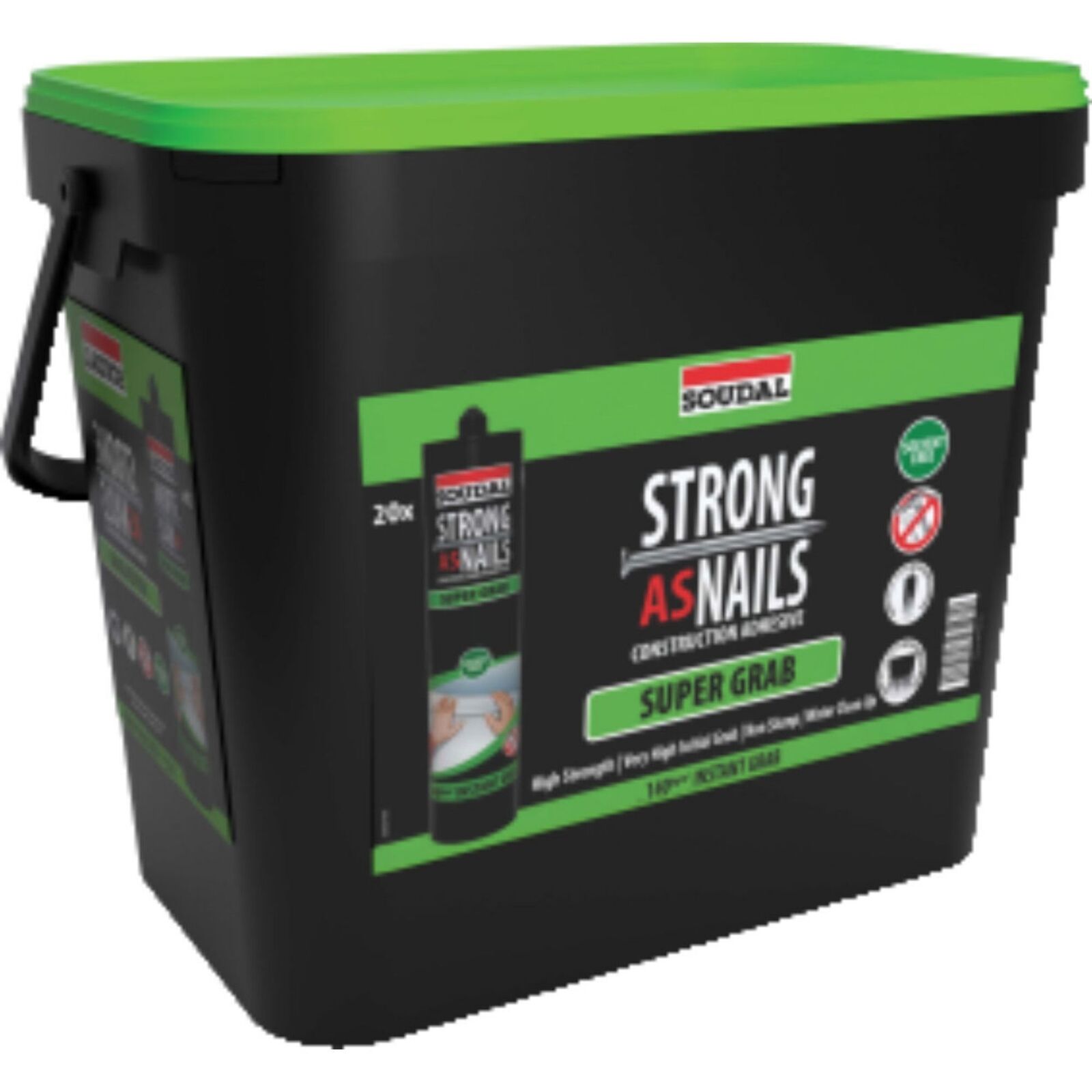 Soudal Strong As Nails Adhesive 20 x 350gr Super Grab (Grab & Go Pack of 20) is a premium General adhesive designed for Australian trade and DIY use. Bucket of 20 cartridges of the above adhesive.